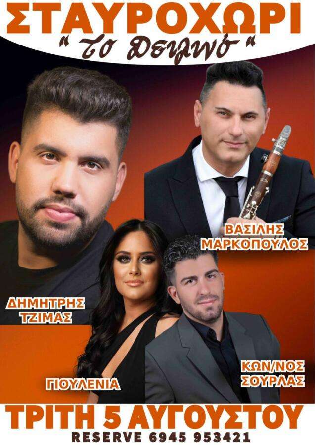 Την Τρίτη 5 Αυγούστου 2025, στο πλαίσιο της εορτής της Μεταμορφώσεως του Σωτήρος, το Σταυροχώρι Πρέβεζας φορά τα γιορτινά του και σας περιμένει για ένα δυνατό καλοκαιρινό γλέντι στο γνωστό μαγαζί “Δειλινό”.