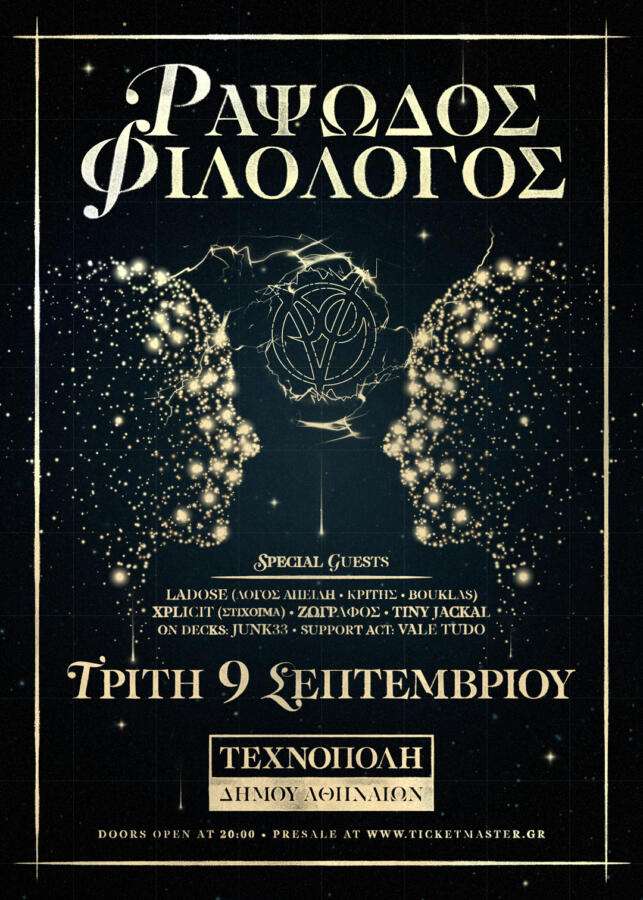 Ο Ραψωδός Φιλόλογος επιστρέφει λοιπόν. Θα είναι το πρώτο του μεγάλο live, για να γιορτάσει τα 22 χρόνια δισκογραφίας του και να παρουσιάσει το sequel του πιο κλασσικού του album: «Εγκεφαλικό τετ α τετ 2: Ελεγεία μιας Εμμονής» και αγαπημένα τραγούδια από όλη του τη δισκογραφία. Και θα είστε όλοι εκεί για να γιορτάσετε μαζί του.