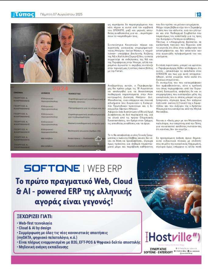 Εν πάση περιπτώσει, μπορεί να ωρύεται ο Περιφερειάρχης δήθεν αλλόφρων, ότι αυτός  αποκάλυψε το σκάνδαλο στον ΟΠΕΚΕΠΕ και πως για αυτό «στοχοποιήθηκε», αλλά γνωρίζει πολύ καλά ότι δικαίως επικρίνεται. Οι συνομιλίες του που καταγράφηκαν δεν αμφισβητούνται, ούτε η εμπλοκή του όπως περιγράφεται από την Ευρωπαϊκή Εισαγγελία, ασφαλώς δε και οι επιχορηγήσεις που εισέπραξαν μέλη της οικογένειάς του οι οποίες μπορεί να μην ξεπερνούν, σίγουρα όμως δεν απέχουν πολύ από εκείνες (2,5 εκατ) της κ.Σεμερτζίδου και του συζύγου της κ.Χρήστου Μαγειρία που κατάγεται από την Μηλιά Μετσόβου. Να και ο «δικός μας» με τον Μητσοτάκη παλιότερα, πιο τσαχπίνης από την Πόπη, για να καταστεί ασύδοτος πιστεύοντας ότι κανένας δεν τον αγγίζει…