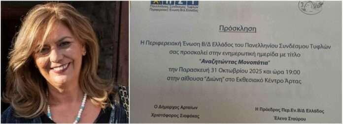 Μετά την απίστευτη γκάφα του Δήμου Αρταίων, που οργάνωσε εκδήλωση για τους “τυφλούς” της πόλης μας… χωρίς να καλέσει τον μοναδικό Σύλλογο Τυφλών και Φίλων Ηπείρου “Ελπίδα”, ήρθε και η ανακοίνωση που έκανε τα πράγματα ακόμα πιο γελοία.