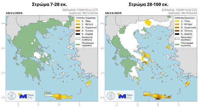 Η ΕΜΥ, μέσα από τις αναλύσεις της 10ης Νοεμβρίου, επισημαίνει ότι η υγρασία εδάφους μετά τον Οκτώβριο παρουσιάζει πλεόνασμα σε αρκετές περιοχές της χώρας, με την Ήπειρο να βρίσκεται ανάμεσα σε αυτές. Ωστόσο, σε περιοχές όπως η Κρήτη, η Αττική, η Εύβοια, η Ανατολική Μακεδονία και τα νησιά του Αιγαίου, η ξηρασία εξακολουθεί να παραμένει στα βαθύτερα στρώματα του εδάφους.