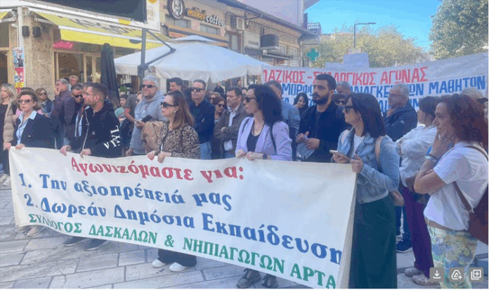 Το Διοικητικό Συμβούλιο του Συλλόγου Δασκάλων και Νηπιαγωγών Νομού Άρτας προχωρά σε παράσταση διαμαρτυρίας την Παρασκευή 21 Νοεμβρίου 2025, στις 13:30, στα γραφεία της ΔΙ.Π.Ε. Άρτας, καταγγέλλοντας τη συνεχιζόμενη υποστελέχωση των σχολείων.