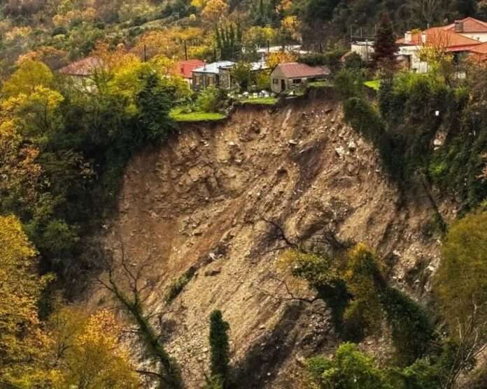 Adel «γκρέμισε» τα Τζουμέρκα – Σπίτια κρέμονται στο κενό μετά την κατολίσθηση
