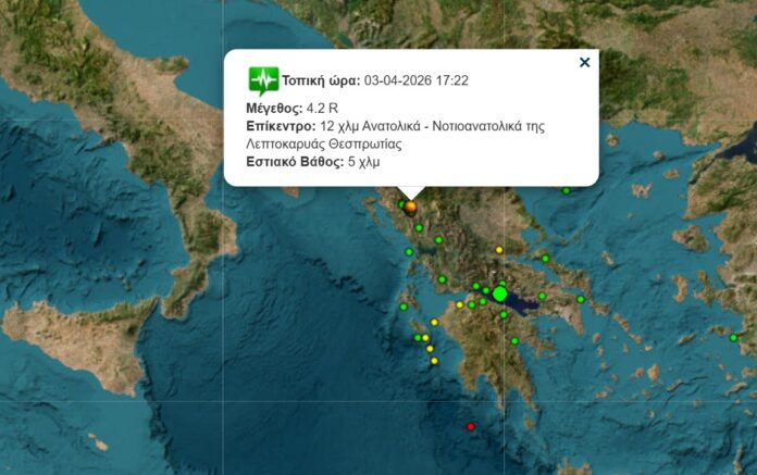 Ισχυρός σεισμός μεγέθους 4.2 βαθμών της κλίμακας Ρίχτερ σημειώθηκε το μεσημέρι της Παρασκευής, 3 Απριλίου 2026, στην Ήπειρο, προκαλώντας ανησυχία μέχρι και την Άρτα. Σύμφωνα με το artinos.gr, η δόνηση καταγράφηκε από το Γεωδυναμικό Ινστιτούτο στις 14:22, με το επίκεντρο να εντοπίζεται 25,3 χιλιόμετρα δυτικά των Ιωαννίνων. Το χαρακτηριστικό που έκανε τον σεισμό να γίνει έντονα αισθητός σε όλη τη βορειοδυτική Ελλάδα ήταν το πολύ μικρό εστιακό βάθος, το οποίο υπολογίστηκε στα 2 μόλις χιλιόμετρα.
