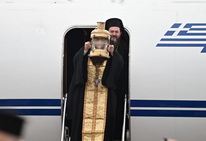 Με λαμπρότητα πραγματοποιήθηκε η άφιξη του Αγίου Φωτός στο αεροδρόμιο Ελευθέριος Βενιζέλος.