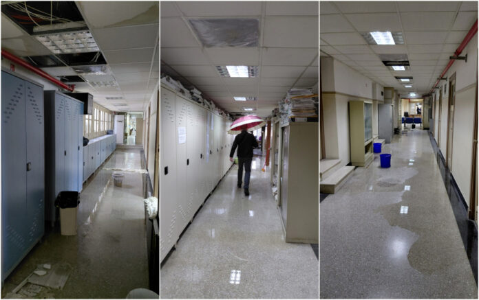 Πεσμένοι σοβάδες και τμήματα της ψευδοροφής, πλημμυρισμένα γραφεία και διάδρομοι με ηλεκτροφόρα καλώδια συνθέτουν την εικόνα που παρουσιάζουν τα δικαστήρια στην Κόρινθο. Μετά τους δικαστικούς υπαλλήλους και η Ένωση Διοικητικών Δικαστών καταγγέλλει την κατάσταση που επικρατεί στο Δικαστικό Μέγαρο Κορίνθου, η οποία είχε ως αποτέλεσμα την αναστολή λειτουργίας του Διοικητικού και Πολιτικού Πρωτοδικείου για 15 ημέρες.