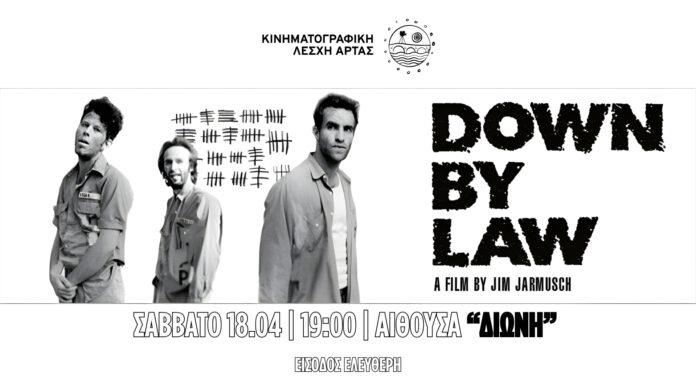 Στην οθόνη θα προβληθεί η εμβληματική ταινία Down by Law του Jim Jarmusch, ένα ασπρόμαυρο φιλμ που συνδυάζει χιούμορ, υπαρξιακή περιπλάνηση και ιδιαίτερη κινηματογραφική αισθητική.
